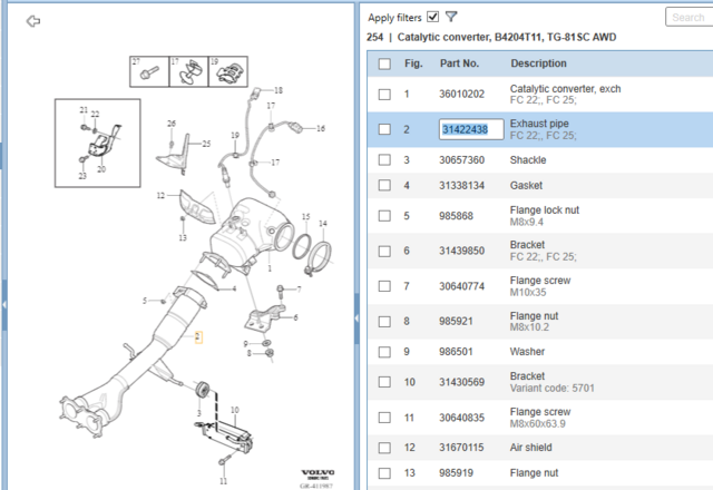 Genuine OEM Volvo Parts & Accessories - 31422438