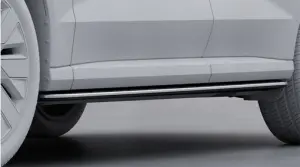 An exclusive and stylish running board that enhances the vehicles powerful look, while providing a well-integrated board to stand on when getting into and out of the vehicle and when loading onto the roof. The running board consists of a step surface in exclusive brushed stainless steel with rubber anti-slip protection that combine to form a well-designed pattern.